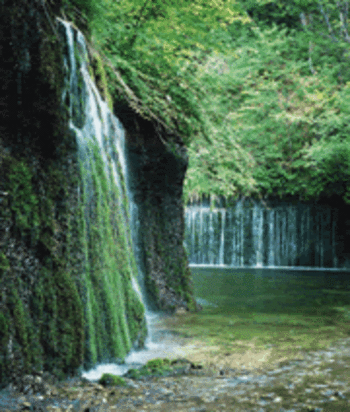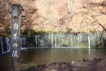 【白絲瀑布】位於舊輕井澤北端的白絲瀑布(白系瀧)可說是輕井澤靈氣散發的極致了!如數百條白絲絹般沿著黑色岩石滑降而下,常有攝影師到此捕捉美景。白絲瀑布神秘的氣質與唯美的景緻又有「輕井澤的祕境」之稱。