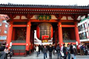 【淺草觀音寺】為日本觀音寺總堂,寺內供奉著大慈大悲觀世音菩薩,寺外道路兩旁都是小店與攤販,各式地方雜貨及紀念品都有。
