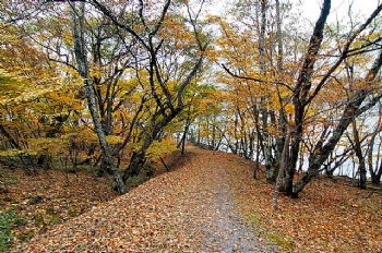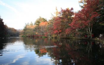【中禪寺湖】原是男體山的火山噴口,積水成湖,是日本最具代表性的高山湖泊,標高海拔1296公尺,湖周圍長度21公里,深161.5公尺,為日本第七深的湖泊。此湖每年五月櫻花盛開,十月楓紅層層,為中禪寺湖兩大勝景,湖水湛藍,水質清澈,能見度達18公尺。湖的南岸地形多突出的岬角,所以有許多以「崎」為名的據點,其中的八丁出島是中禪寺湖最出名的賞楓點,其他幾個崎角也有不錯的景致。